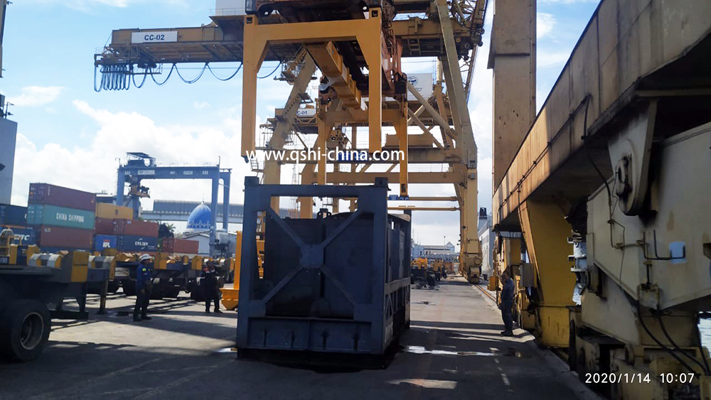 Overheight Frame is a attachment of QSHI spreader. Handling of open top ISO containers and flat racks having overheight loads. All functions are controlled by the master spreader; ie. Actuation of the twistlocks or telescoping of the master spreader is duplicated on the slave unit.Tests indicate that attachment can be done by driver only in 30 seconds. No dock-side personnel are exposed to potentially dangerous conditions.